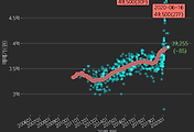 - 하단에 이어지는 거래량 막대차트(bar chart)와 함께 비교해보는 것이 좋습니다.