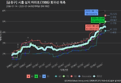 - 하단에 이어지는 거래량 막대차트(bar chart)와 함께 비교해보는 것이 좋습니다.