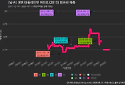 - 하단에 이어지는 거래량 막대차트(bar chart)와 함께 비교해보는 것이 좋습니다.