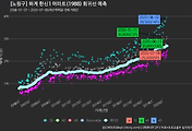 - 하단에 이어지는 거래량 막대차트(bar chart)와 함께 비교해보는 것이 좋습니다.