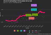 - 하단에 이어지는 거래량 막대차트(bar chart)와 함께 비교해보는 것이 좋습니다.