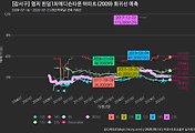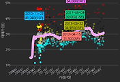 - 하단에 이어지는 거래량 막대차트(bar chart)와 함께 비교해보는 것이 좋습니다.