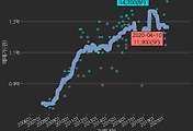 - 하단에 이어지는 거래량 막대차트(bar chart)와 함께 비교해보는 것이 좋습니다.