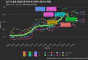 - 하단에 이어지는 거래량 막대차트(bar chart)와 함께 비교해보는 것이 좋습니다.