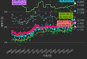 - 하단에 이어지는 거래량 막대차트(bar chart)와 함께 비교해보는 것이 좋습니다.