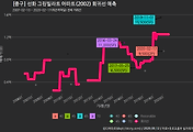 - 하단에 이어지는 거래량 막대차트(bar chart)와 함께 비교해보는 것이 좋습니다.