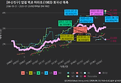 - 하단에 이어지는 거래량 막대차트(bar chart)와 함께 비교해보는 것이 좋습니다.