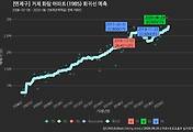 - 하단에 이어지는 거래량 막대차트(bar chart)와 함께 비교해보는 것이 좋습니다.