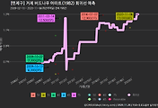 - 하단에 이어지는 거래량 막대차트(bar chart)와 함께 비교해보는 것이 좋습니다.