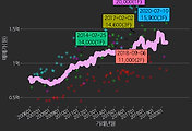 - 하단에 이어지는 거래량 막대차트(bar chart)와 함께 비교해보는 것이 좋습니다.