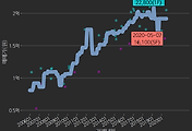 - 하단에 이어지는 거래량 막대차트(bar chart)와 함께 비교해보는 것이 좋습니다.