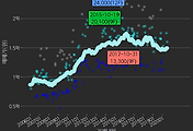 - 하단에 이어지는 거래량 막대차트(bar chart)와 함께 비교해보는 것이 좋습니다.