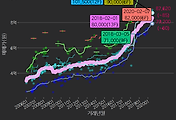 - 하단에 이어지는 거래량 막대차트(bar chart)와 함께 비교해보는 것이 좋습니다.