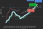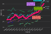 - 하단에 이어지는 거래량 막대차트(bar chart)와 함께 비교해보는 것이 좋습니다.