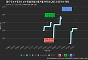- 하단에 이어지는 거래량 막대차트(bar chart)와 함께 비교해보는 것이 좋습니다.