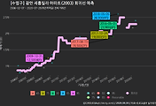 - 하단에 이어지는 거래량 막대차트(bar chart)와 함께 비교해보는 것이 좋습니다.