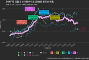 - 하단에 이어지는 거래량 막대차트(bar chart)와 함께 비교해보는 것이 좋습니다.