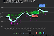 - 하단에 이어지는 거래량 막대차트(bar chart)와 함께 비교해보는 것이 좋습니다.