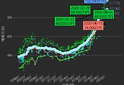 - 하단에 이어지는 거래량 막대차트(bar chart)와 함께 비교해보는 것이 좋습니다.