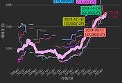- 하단에 이어지는 거래량 막대차트(bar chart)와 함께 비교해보는 것이 좋습니다.