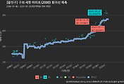 - 하단에 이어지는 거래량 막대차트(bar chart)와 함께 비교해보는 것이 좋습니다.