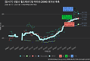 - 하단에 이어지는 거래량 막대차트(bar chart)와 함께 비교해보는 것이 좋습니다.