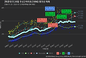 - 하단에 이어지는 거래량 막대차트(bar chart)와 함께 비교해보는 것이 좋습니다.