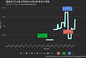 - 하단에 이어지는 거래량 막대차트(bar chart)와 함께 비교해보는 것이 좋습니다.