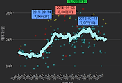 - 하단에 이어지는 거래량 막대차트(bar chart)와 함께 비교해보는 것이 좋습니다.