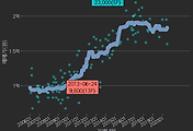 - 하단에 이어지는 거래량 막대차트(bar chart)와 함께 비교해보는 것이 좋습니다.