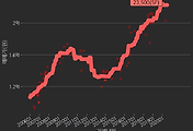 - 하단에 이어지는 거래량 막대차트(bar chart)와 함께 비교해보는 것이 좋습니다.