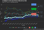 - 하단에 이어지는 거래량 막대차트(bar chart)와 함께 비교해보는 것이 좋습니다.
