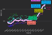 - 하단에 이어지는 거래량 막대차트(bar chart)와 함께 비교해보는 것이 좋습니다.