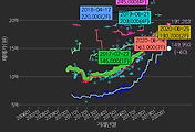- 하단에 이어지는 거래량 막대차트(bar chart)와 함께 비교해보는 것이 좋습니다.
