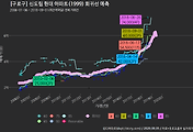 - 하단에 이어지는 거래량 막대차트(bar chart)와 함께 비교해보는 것이 좋습니다.