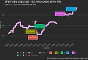 - 하단에 이어지는 거래량 막대차트(bar chart)와 함께 비교해보는 것이 좋습니다.