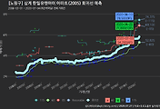 - 하단에 이어지는 거래량 막대차트(bar chart)와 함께 비교해보는 것이 좋습니다.