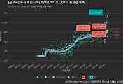 - 하단에 이어지는 거래량 막대차트(bar chart)와 함께 비교해보는 것이 좋습니다.