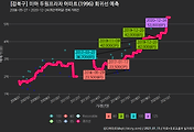 - 하단에 이어지는 거래량 막대차트(bar chart)와 함께 비교해보는 것이 좋습니다.