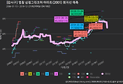 - 하단에 이어지는 거래량 막대차트(bar chart)와 함께 비교해보는 것이 좋습니다.