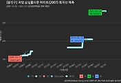 - 하단에 이어지는 거래량 막대차트(bar chart)와 함께 비교해보는 것이 좋습니다.