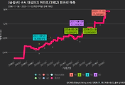 - 하단에 이어지는 거래량 막대차트(bar chart)와 함께 비교해보는 것이 좋습니다.