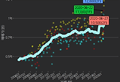- 하단에 이어지는 거래량 막대차트(bar chart)와 함께 비교해보는 것이 좋습니다.