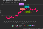- 하단에 이어지는 거래량 막대차트(bar chart)와 함께 비교해보는 것이 좋습니다.