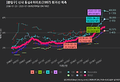 - 하단에 이어지는 거래량 막대차트(bar chart)와 함께 비교해보는 것이 좋습니다.