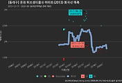 - 하단에 이어지는 거래량 막대차트(bar chart)와 함께 비교해보는 것이 좋습니다.