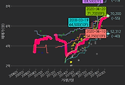 - 하단에 이어지는 거래량 막대차트(bar chart)와 함께 비교해보는 것이 좋습니다.