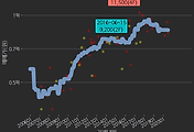 - 하단에 이어지는 거래량 막대차트(bar chart)와 함께 비교해보는 것이 좋습니다.