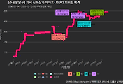 - 하단에 이어지는 거래량 막대차트(bar chart)와 함께 비교해보는 것이 좋습니다.