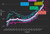 - 하단에 이어지는 거래량 막대차트(bar chart)와 함께 비교해보는 것이 좋습니다.